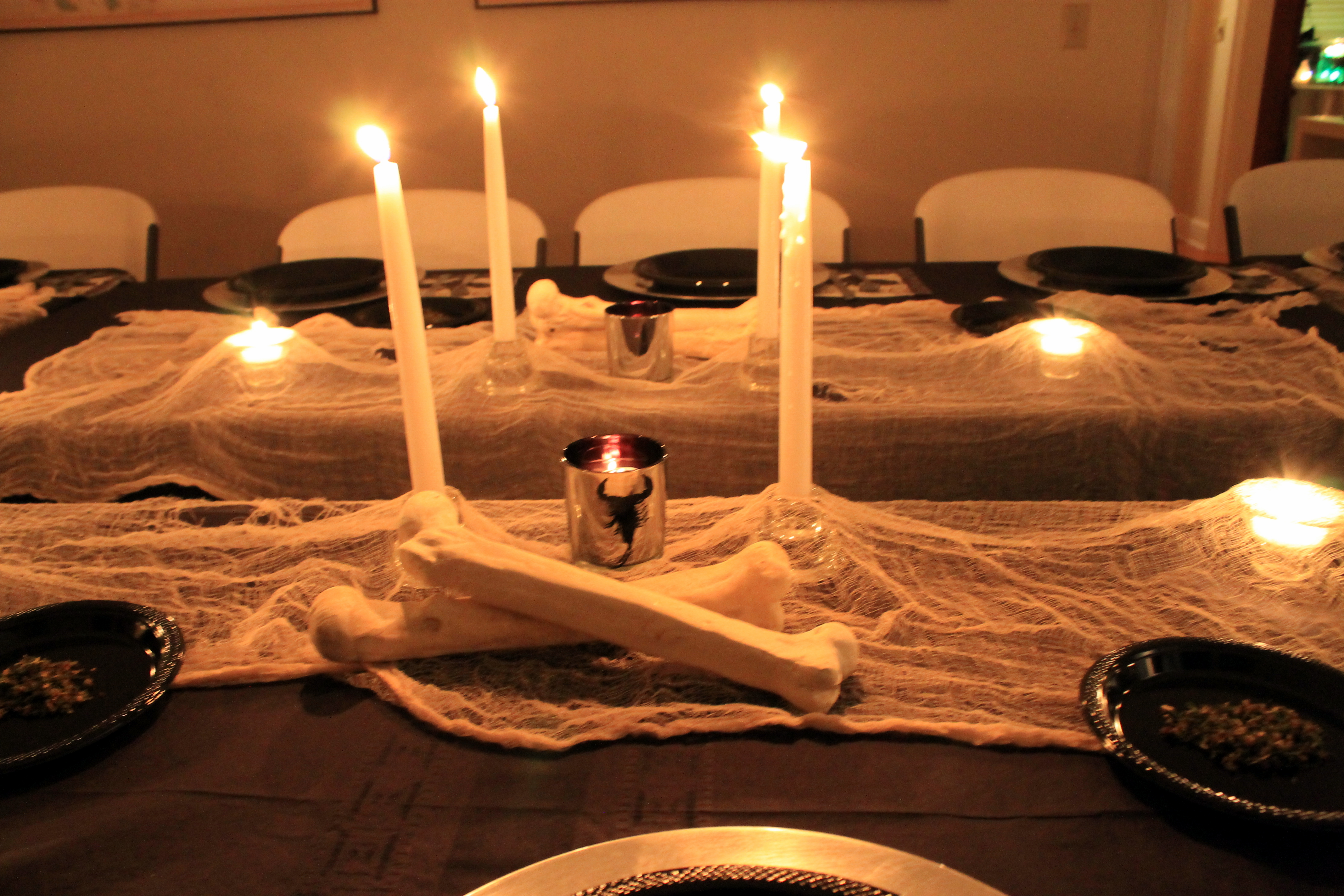SpellsConsole tablemantelfoodboo2You may have noticed a theme with the candles…we went a little heavy with the candles this year…we initially planned to do this outside, but then it rained so we moved to the living room as depicted above…