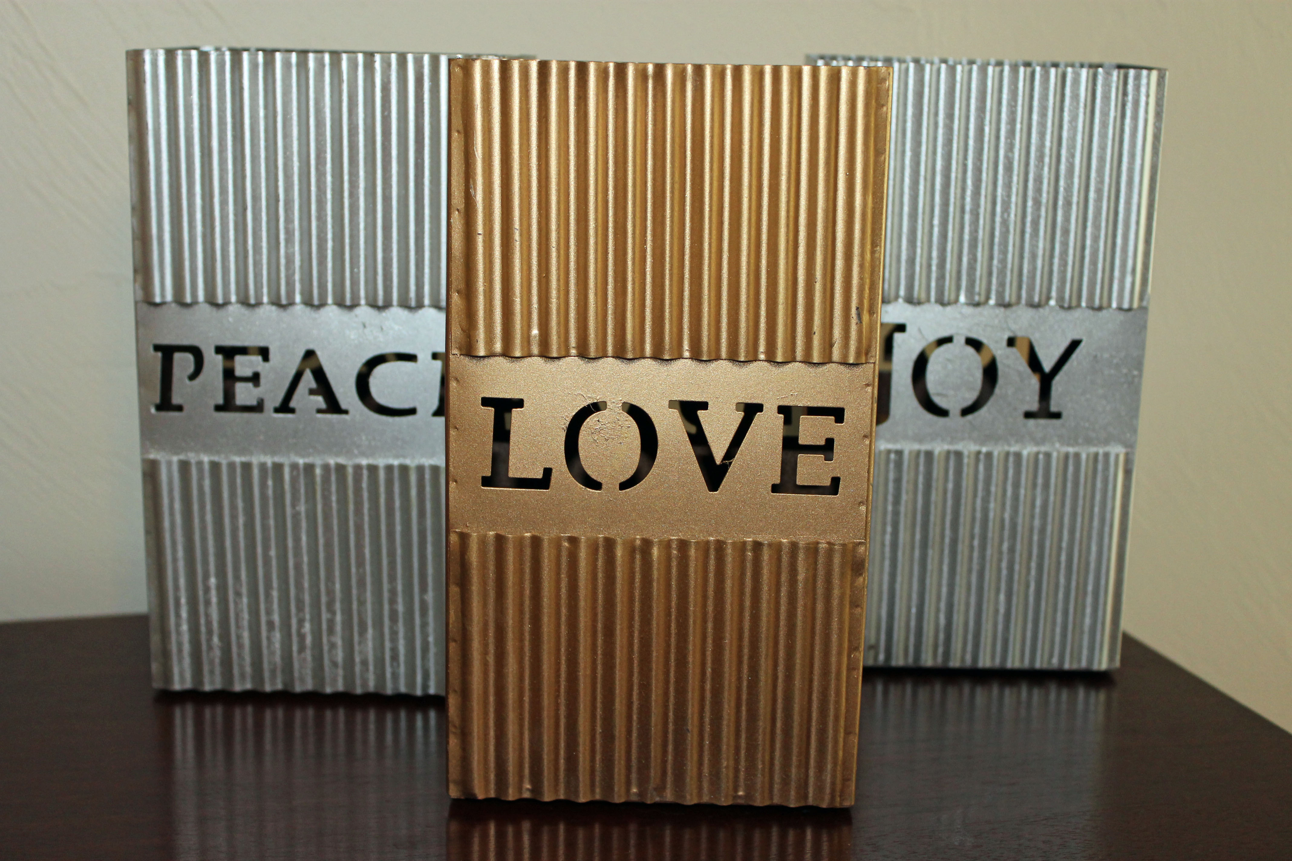 I picked up these luminaries last year at Goodwill, they were really sad and pathetic before they got a nice coat of silver and gold spray paint perked them up!
